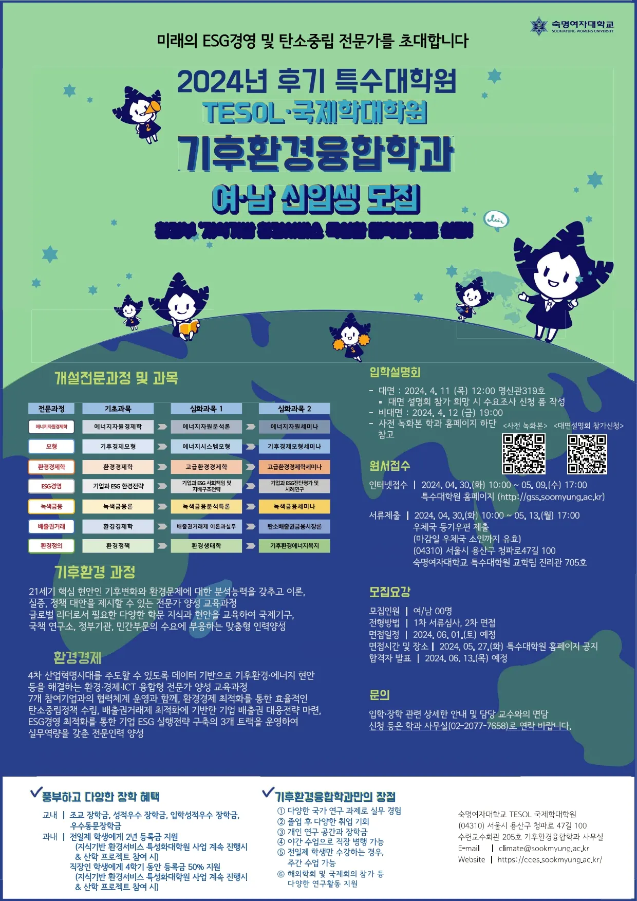 [숙명여대 특수대학원 기후환경융합학과] 2024 후기 여남 신입생 모집(석사과정)