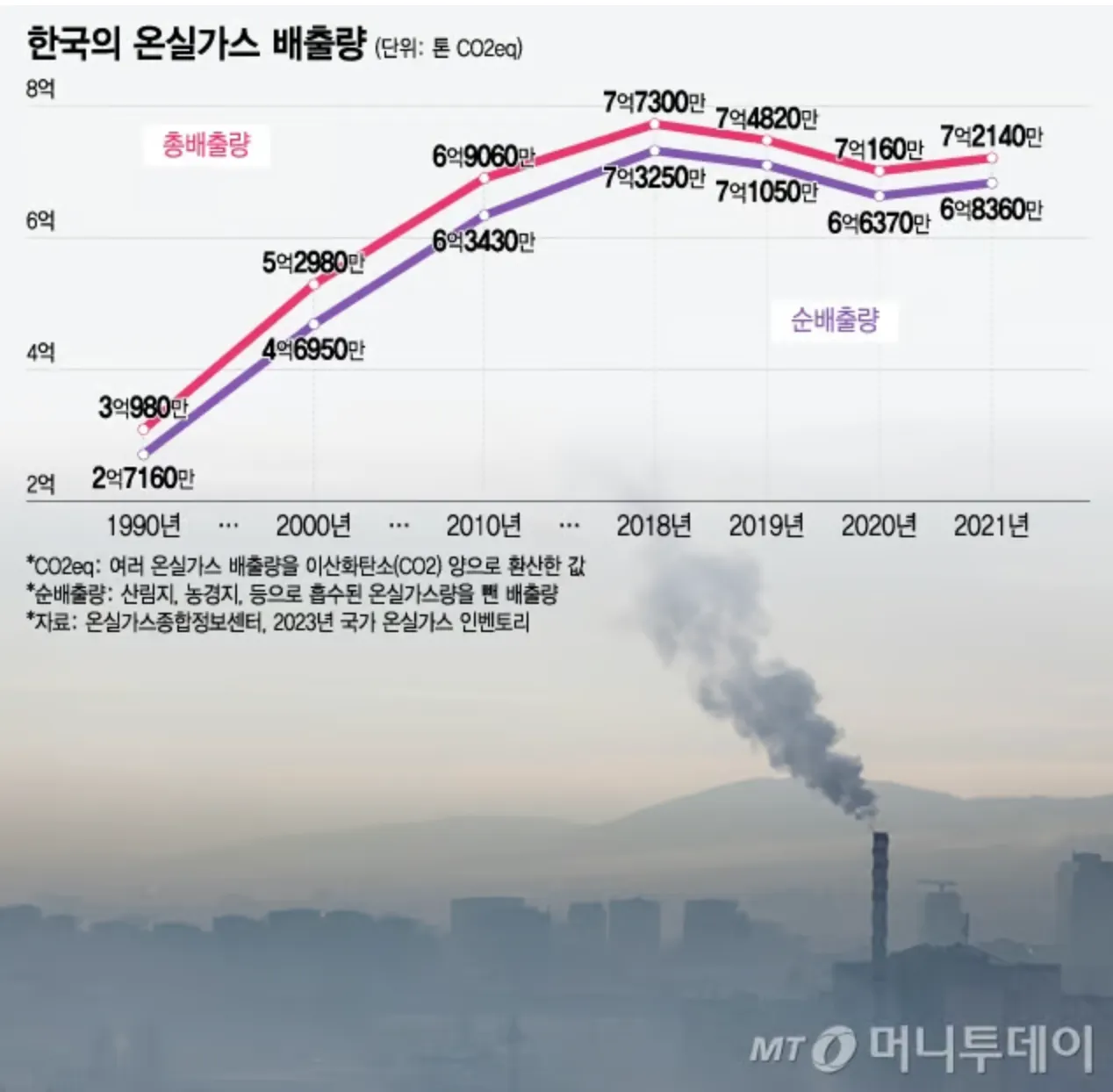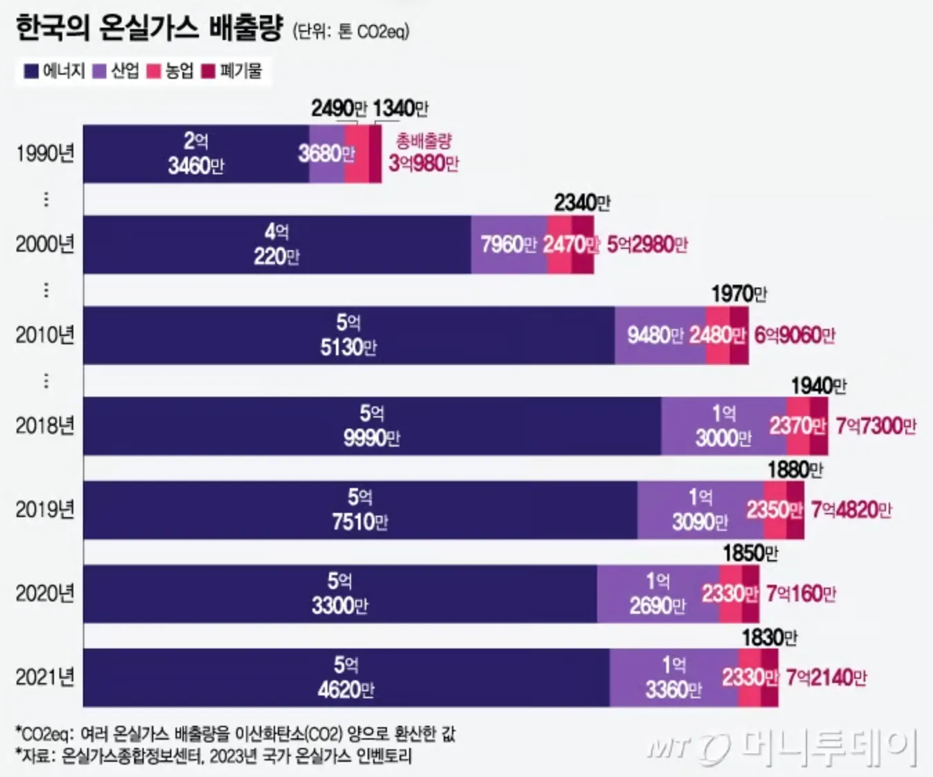 한국의 온실가스 배출원 별 배출량/그래픽=윤선정