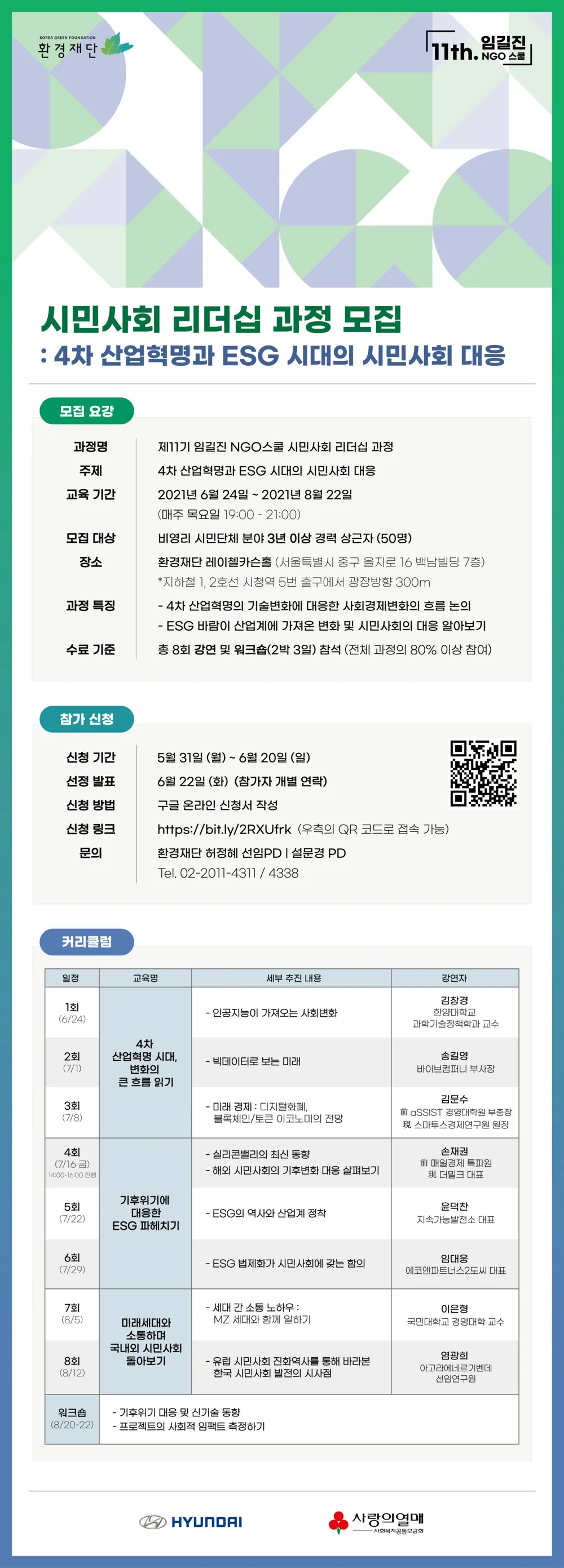 ▷과정명 : 제11기 임길진 NGO스쿨 시민사회 리더십 과정