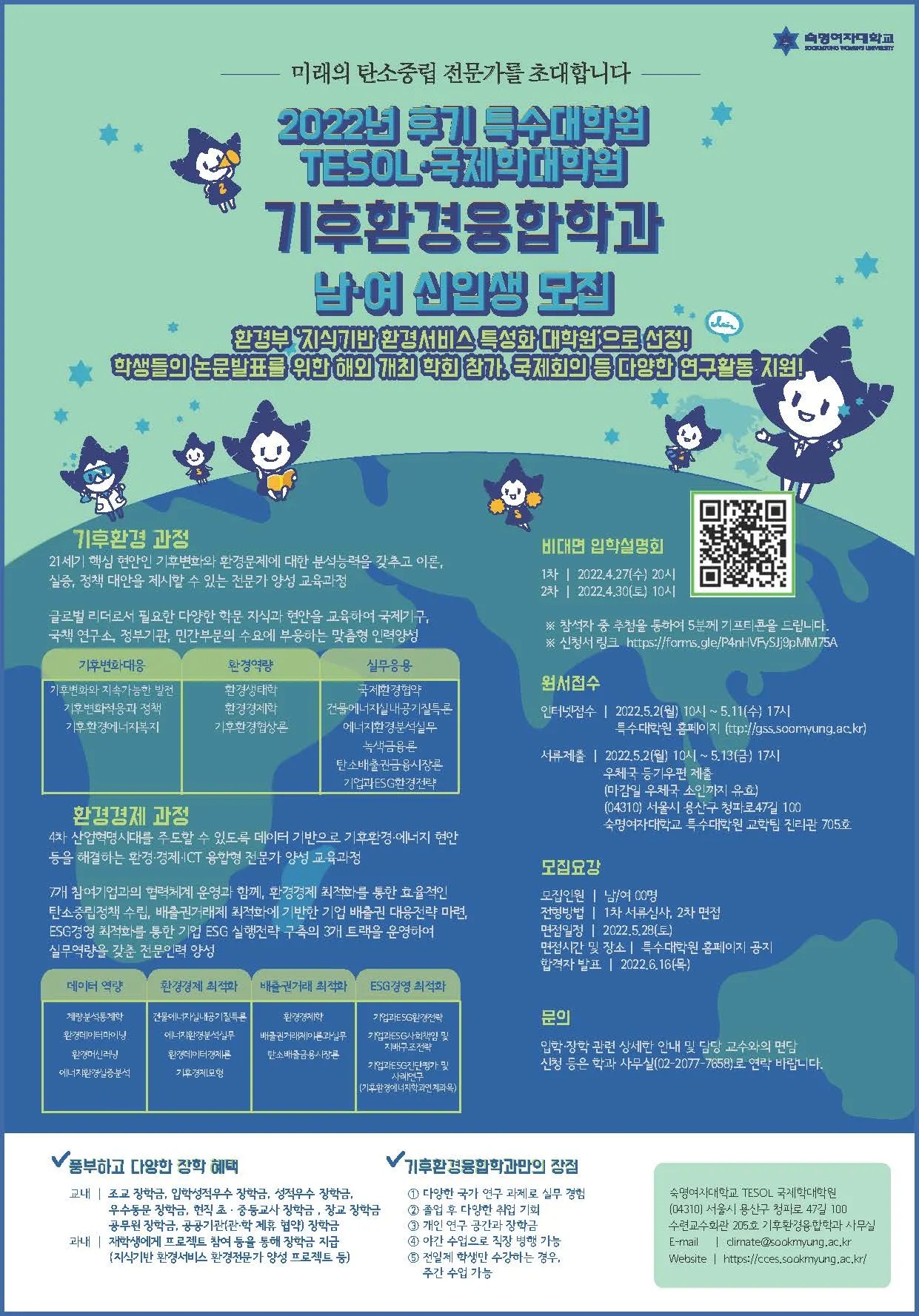 숙명여자대학교 특수대학원 기후환경융합학과에서는 22학년 후기 신입생을 모집합니다.
